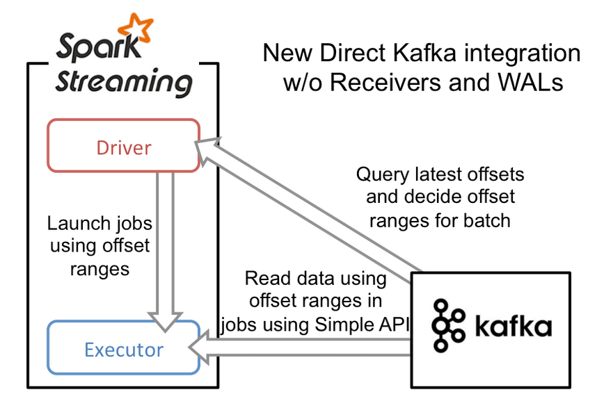 스파크 스트리밍에서 카프카의 데이터를 가져오는 여러 방법이 있는데 exactly-once를 지원하기 위해 개발된 Direct API for Kafka(이하 직접 모델)를 소개한다. 그리고 기존 리시버 모델과는 무슨 차이가 있는지 살펴보자.