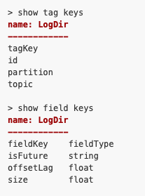 토픽 - 파티션 - 브로커 ID 값을 tag key로 주어서 관리했다. influxDB 대한 설명은 글의 범위를 벗어난 것이라 더 자세히 하진 않는다.