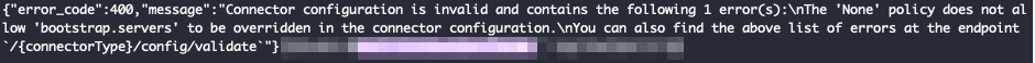 오류 내용을 간단히 해석하자면 'None' 정책은 bootstrap.servers 설정을 바꿀 수 없단다.